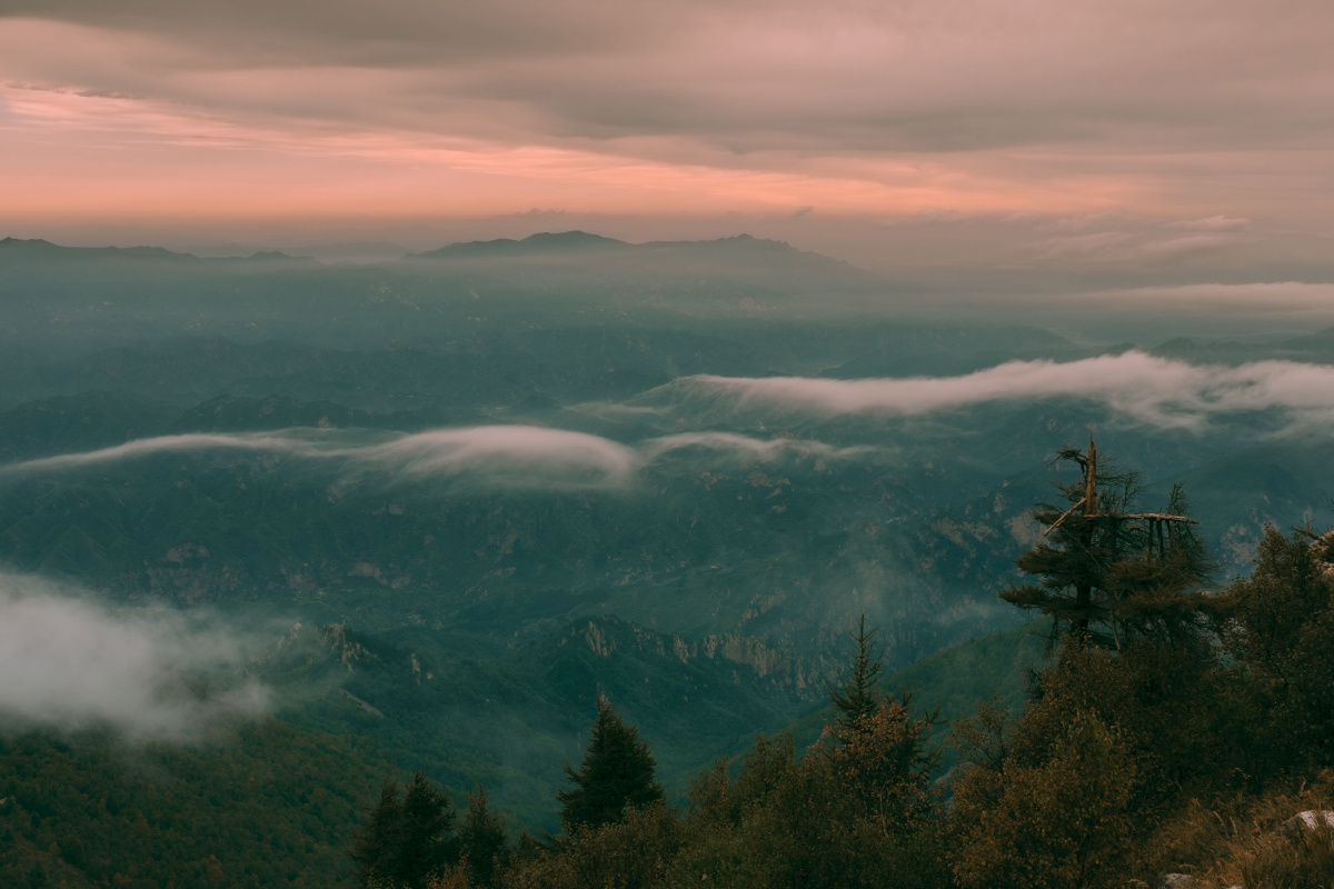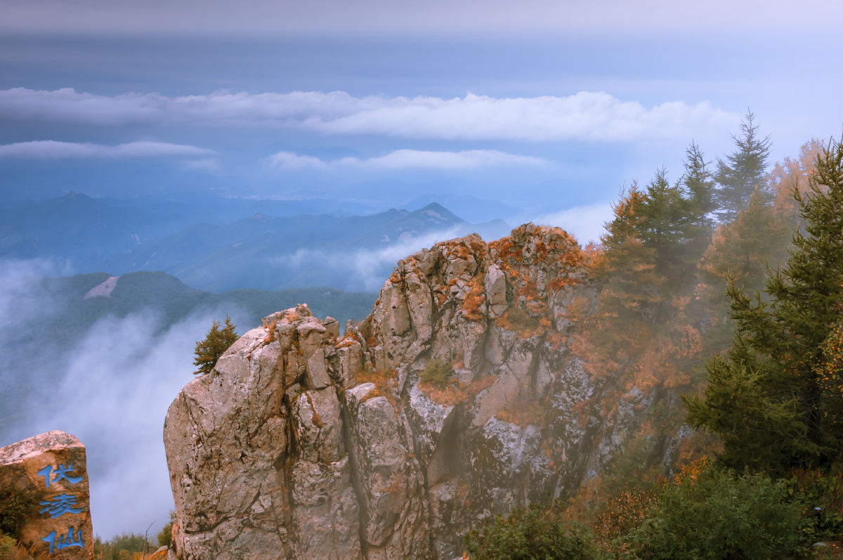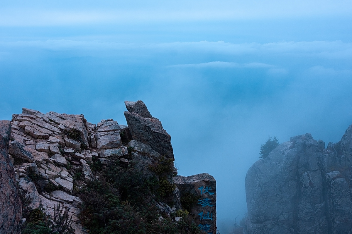 某年的9月份,夜宿雾灵山顶,晨起拍雾,巨冷。